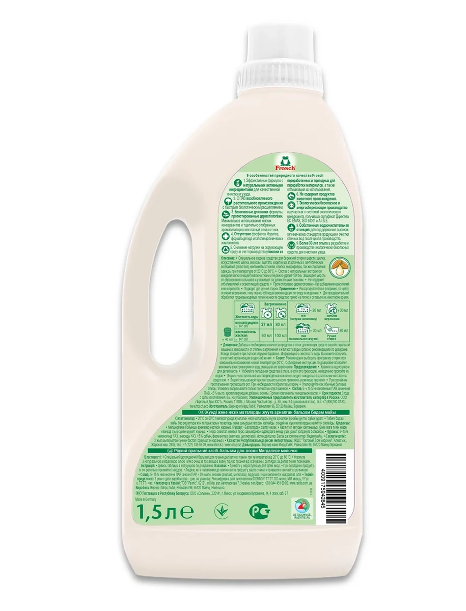 Бальзам Frosch для стирки шерстяных и нежных тканей, 1.5л