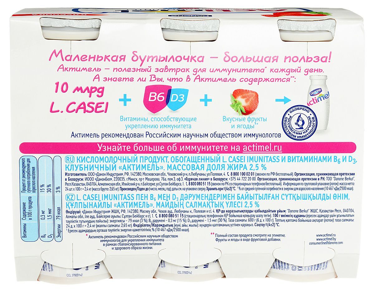 Кисломолочный продукт ACTIMEL Клубника БЗМЖ, 100 г