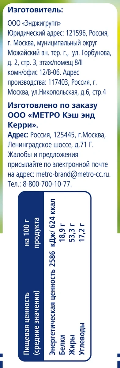 | Энергетическая ценность, ккал/100 г | 635 |