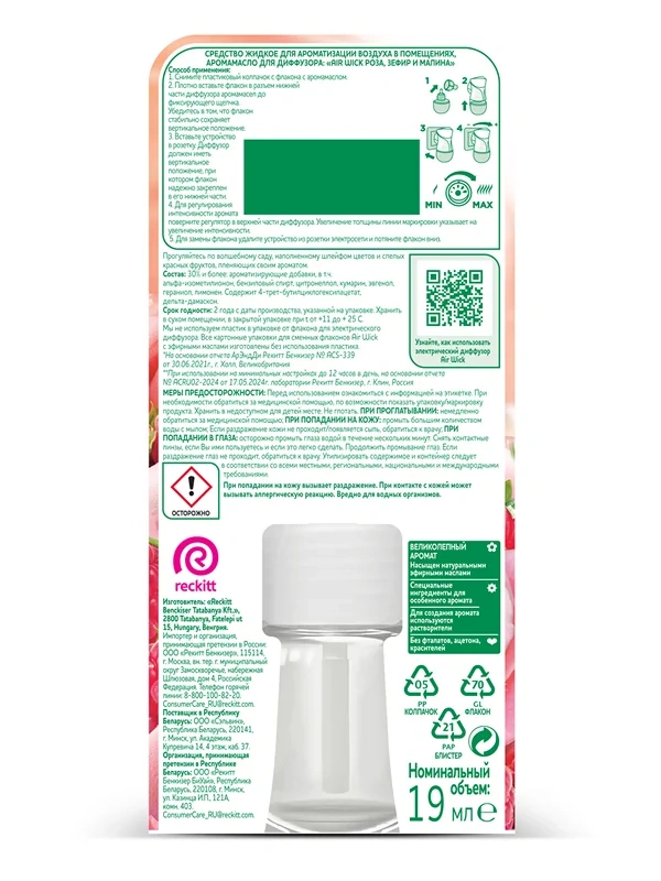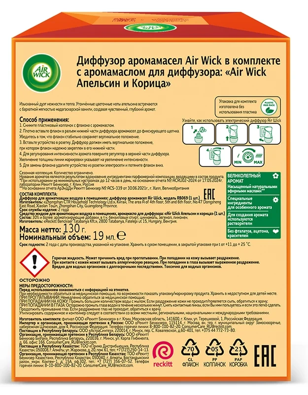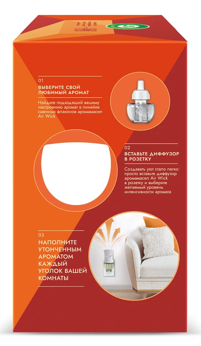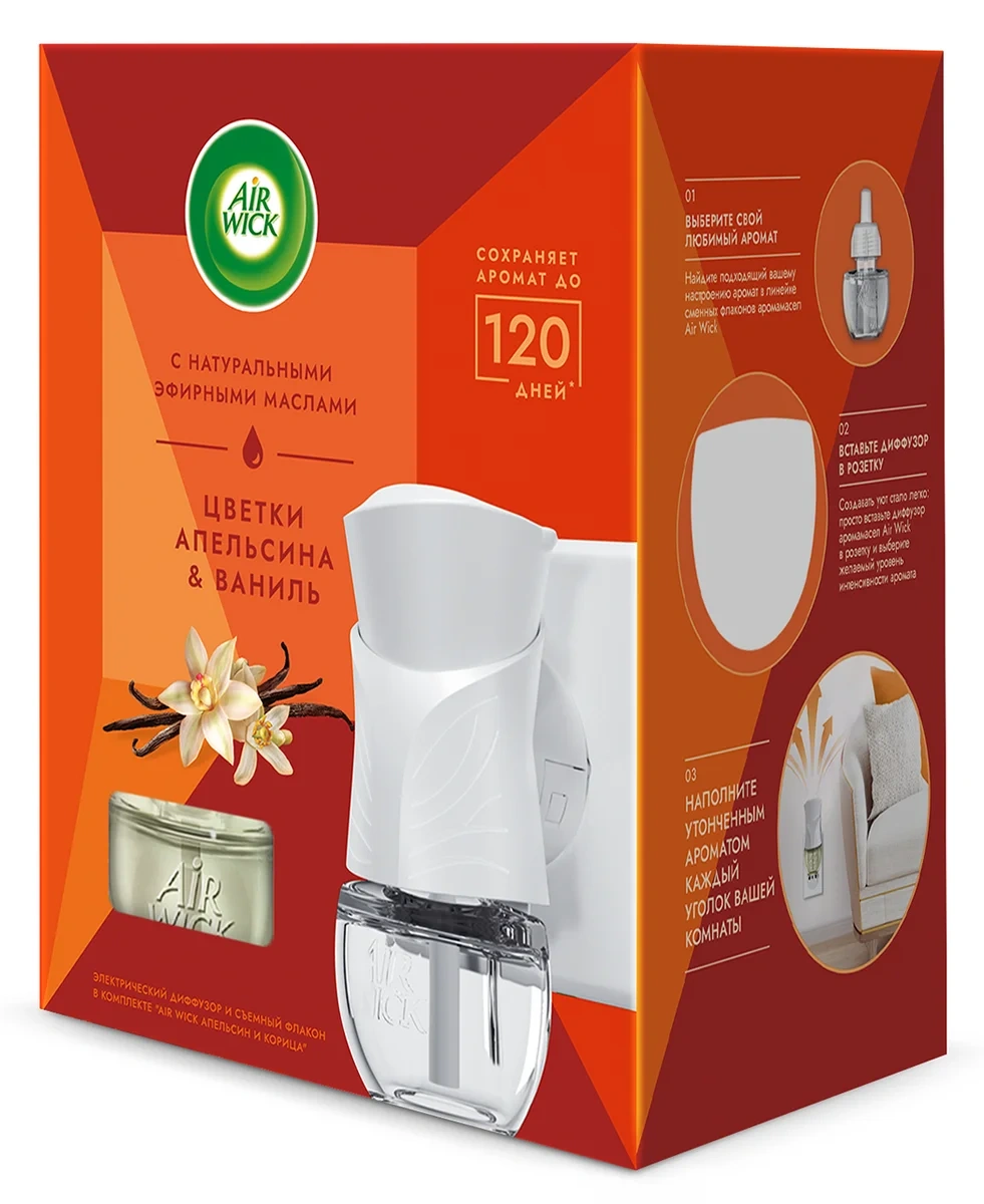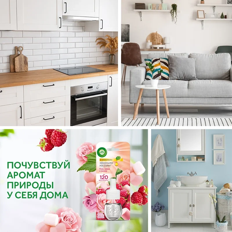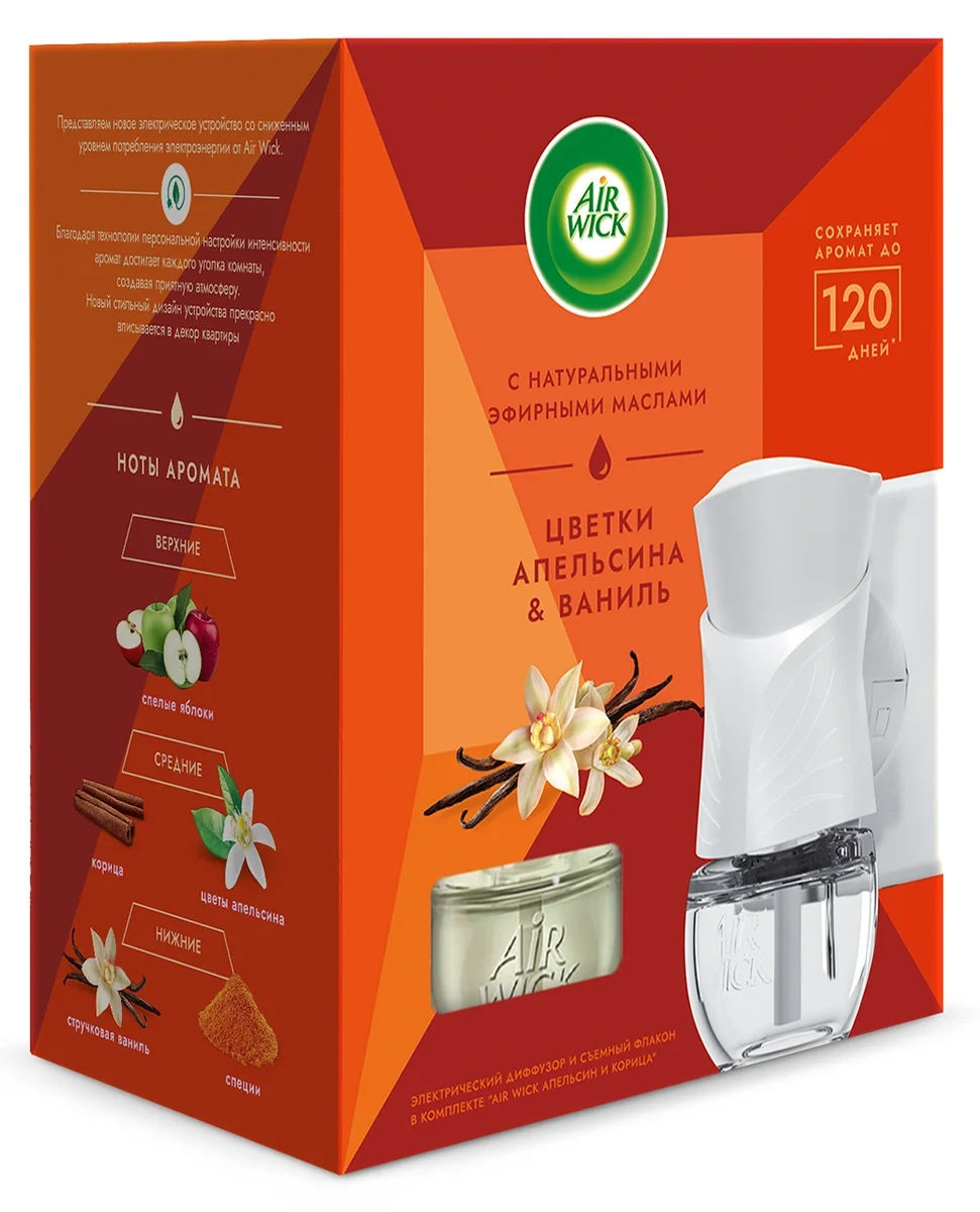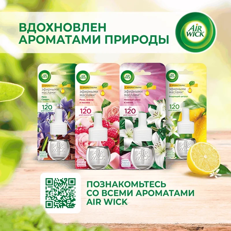 Обеспечивает более 100 дней деликатного и утонченного аромата в помещении при использовании с диффузором аромамасел Air Wick.