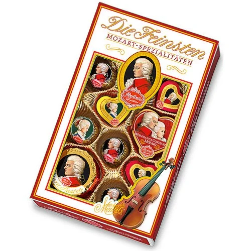 Набор шоколадный Mozart Reber Die Feinsten Mozart-Spezialitaten, 218 г — десерт к сладкому столу и фуршету. Лакомство поставляется в упаковке с оригинальным дизайном и подходит в качестве презента, комплимента к любому празднику. Десерт обладает нежной текстурой и приятным вкусом. Натуральный состав не вредит фигуре и обмену веществ, если употребляется в умеренном количестве. Конфеты – неотъемлемая часть подарка на Новый год. Им обрадуются взрослые и маленькие сладкоежки. К тому же конфеты – отличная альтернатива калорийным пирожным и тортам и хорошая идея для похода в гости.