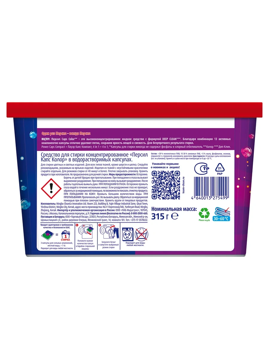 Капсулы для стиральной машины Persil Caps Color (Персил Капс Колор) для цветного белья - это высококонцентрированное жидкое средство с формулой DEEP CLEAN.