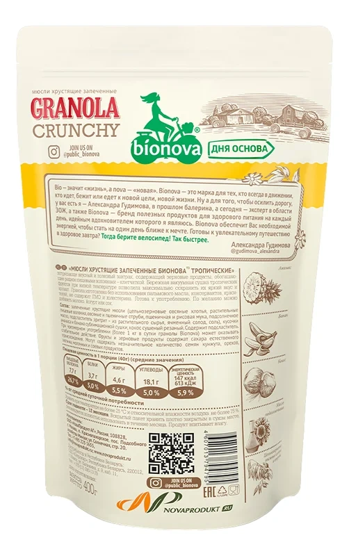 Гранола-мюсли Bionova Crunchy Тропическая, 400г
