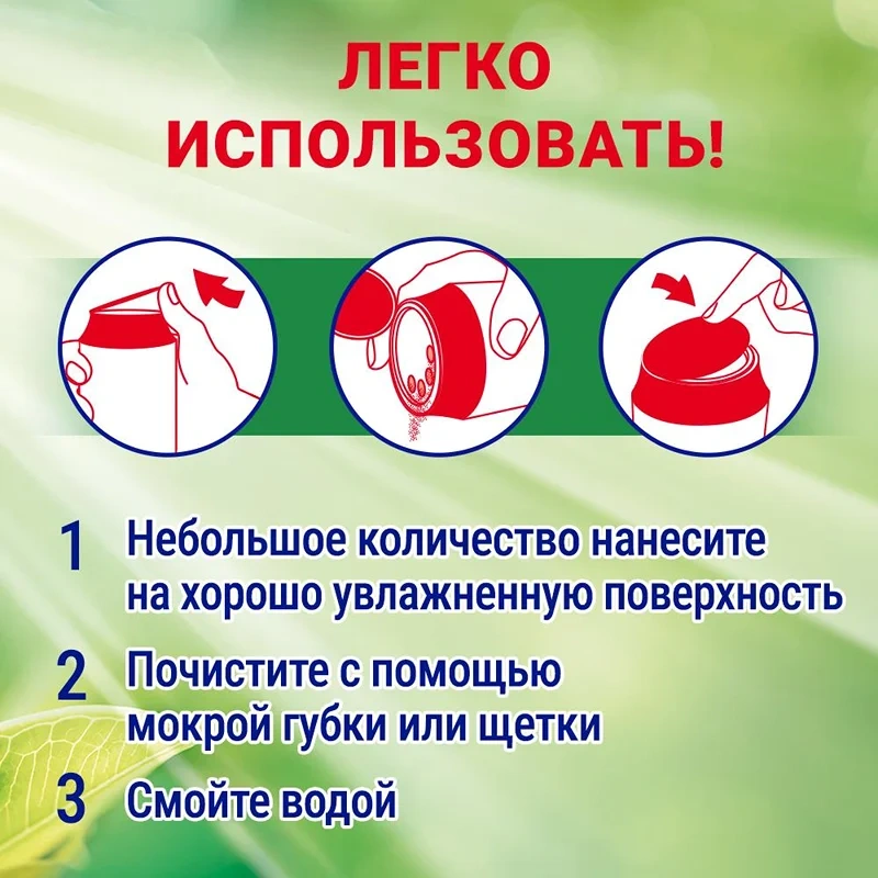 Средство ПЕМОЛЮКС Про нейчер, 480 г изготовлено на основе универсальной формулы, включающей абразивные частички с деликатным мягким действием. Оно предназначено для ухода за керамикой, эмалированными и металлическими покрытиями на кухне, в туалете и ванной комнаты, подойдет для очистки раковин, сантехники и кафельной плитки. С осторожностью этим продуктом также можно пользоваться для чистки пластика и полированных поверхностей. Средство с легкостью справляется с жирными следами, остатками пищи, мыльными разводами и другими стойкими загрязнениями. Пользоваться им очень легко. Достаточно лишь открыть крышку флакона, высыпать небольшое количество порошка на предварительно смоченную водой поверхность, потереть губкой или салфеткой, а затем смыть водой.ПЕМОЛЮКС Про нейчер не включает хлор и изготовлен с заботой об экологии нашей планеты. Входящие в его состав ингредиенты на 99% имеют натуральное происхождение, а сам порошок помещен во флакон, на 50% состоящий из переработанного пластика. Характеристики:Состав: >,= 30 % природного молотого мрамора, <, 5 % амфотерных ПАВ, соды, сульфата натрия, красителя, отдушки (в т.ч. лимонена).Размеры, мм: 65 x 65 x 193