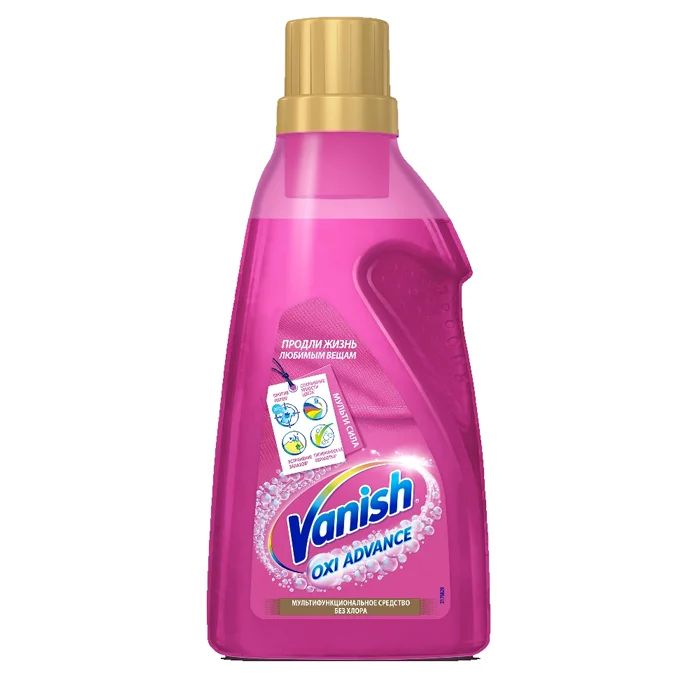 Vanish Oxi Advance Мультисила – новое мультифункциональное средство без хлора для усиления качества стирки цветных тканей. Теперь Ваниш не только эффективно удаляет пятна, но и предотвращает окрашивание ткани, избавляет от неприятного запаха и производит гигиеническую обработку! Ваниш Мультисила – одно решение трех проблем! Продли жизнь любимым вещам с Vanish!
