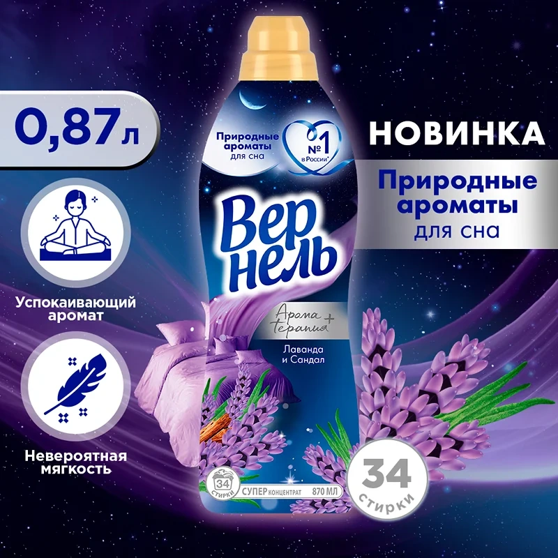 Кондиционер для белья Вернель Ароматерапия 870мл, лаванда и сандал