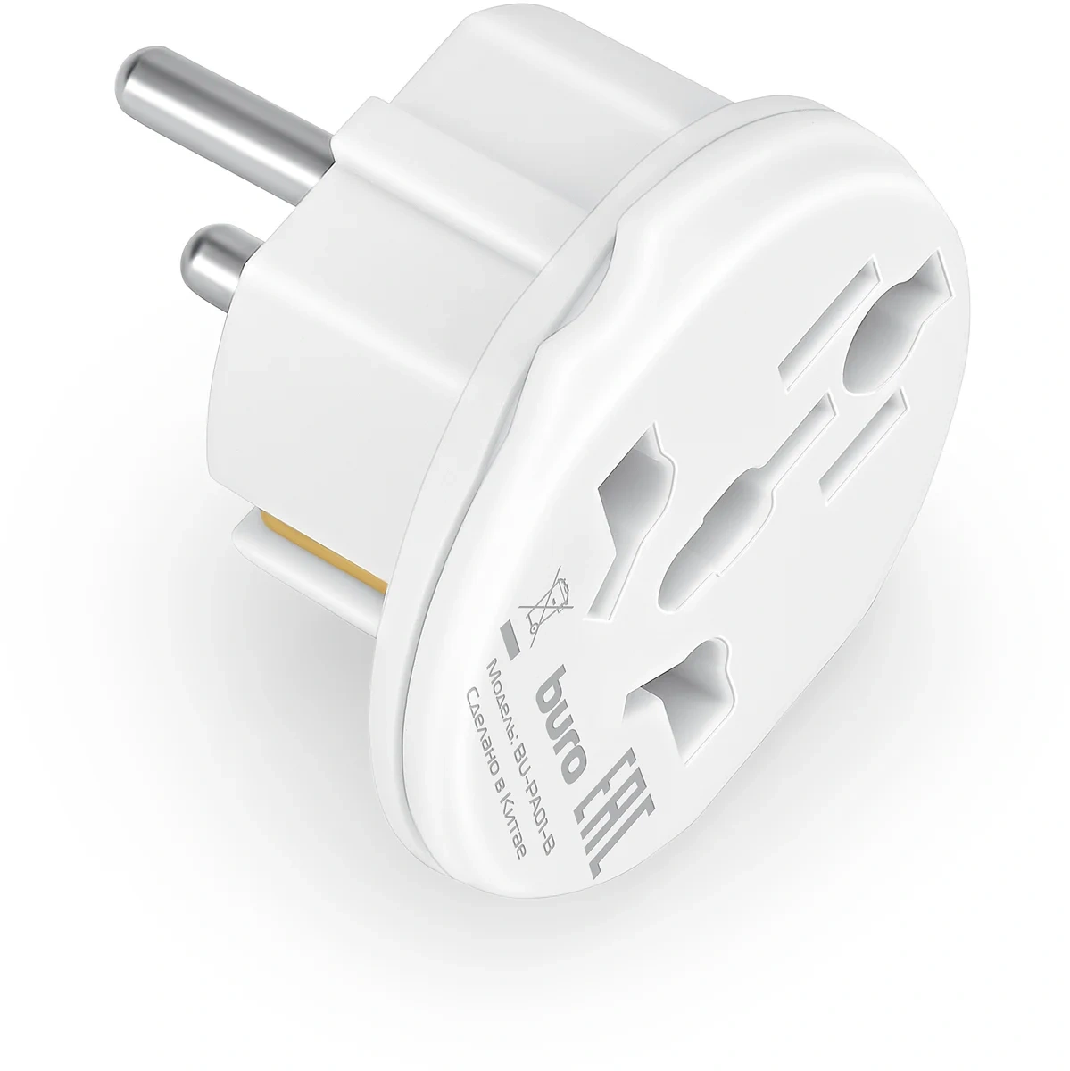 Адаптер-переходник Buro BU-PA01-W (1 розетка) белый (пакет ПЭ)