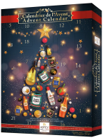 Набор конфет ассорти из темного шоколада с алкогольными начинками Advent calendar Christmas Magic. В этом календаре от Abtey Chocolatiers представлены 24 шоколада с ликерной начинкой, в том числе Куантро, Пуаре Уильямс, кальвадос и Сент-Джеймс.