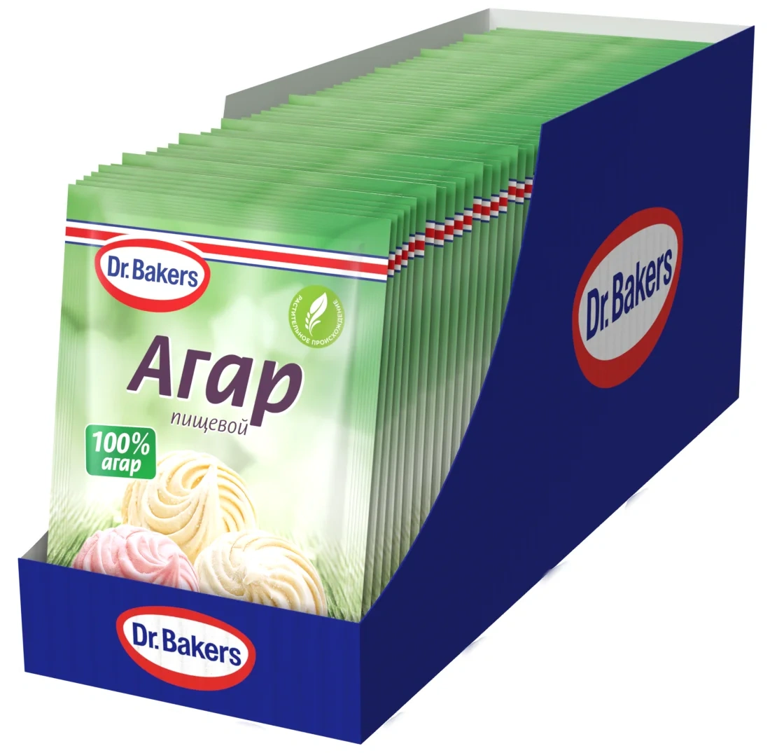 Агар - натуральный растительный загуститель. Идеально подходит для приготовления суфле, зефира и мармелада. Имеет полностью растительное происхождение. Агар Dr.Bakers это 100% чистый агар без добавок. Одна упаковка (7 г) рассчитана на 500 мл жидкости.