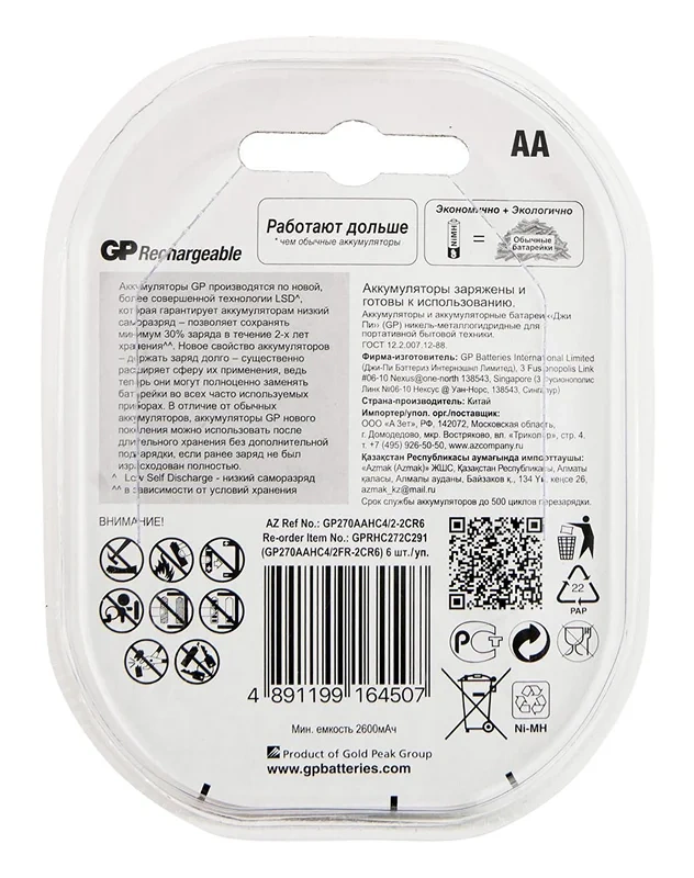 | Дополнительная информация | аккумуляторы gp нового поколения можно использовать после длительного хранения без дополнительной по |