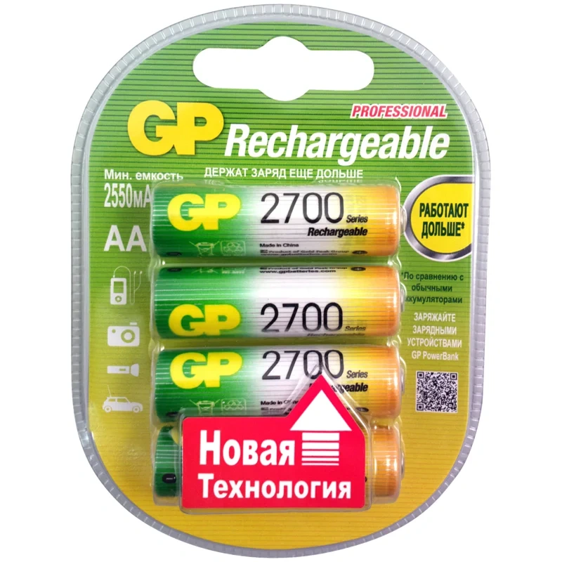 Высокая емкость · Никель- металлгидридные аккумуляторы GP Batteries обладают максимальной емкостью и плотностью энергии, более чем в два раза превышающей уровень никель-кадмиевых аккумуляторов. Они прекрасно работают в современных цифровых устройствах с большими токами потребления, таких как цифровые фотоаппараты, миникомпьютеры, плееры, детские игрушки и т.п.Мощный разряд · Продолжительный ток разряда до 3С (три значения емкости).Широкий температурный интервал · Температура окружающей среды при разряде аккумуляторов от -20 до +50 С.Быстрый заряд · Аккумуляторы могут быть заряжены менее, чем за 1 час.Длительный срок службы · В зависимости от условий эксплуатации срок службы аккумуляторов составляет 500-1000 циклов заряд-разряд.Безопасный перезаряд · Аккумуляторы способны длительное время (до 6 месяцев) выдерживать заряд током 0,1С.Отсутствие эффекта памяти · Нет необходимости разряжать аккумуляторы перед зарядом.Сертификация качества · Все заводы GP Batteries сертифицированы по международной системе контроля качества продукции ISO9001, 9002 и 14001.Цена указана за один аккумулятор.