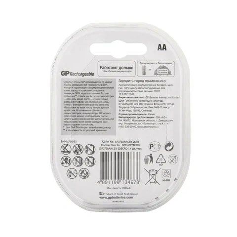 Комплект никель-металлогидридных аккумуляторов от GP – идеальное решение для энергоемких и часто используемых устройств: цифровых фотоаппаратов, фотовспышек, фонарей, часов, игровых мини-приставок и детских игрушек, будильников, MP3-плееров, компьютерных мышек и клавиатур, медицинских приборов и т. д. Аккумуляторы имеют большой объем емкости – 2700 мАч. В результате они имеют увеличенную продолжительность работы. Элементы питания GP выдерживают до 500 циклов перезарядки. Никель-металлогидридные аккумуляторы практически не имеют эффекта памяти: их не нужно полностью разряжать перед зарядкой, чтобы они соответствовали своей номинальной емкости. Приобретение комплекта из четырех элементов питания 270AAHC3/1-CR4 еще и дает дополнительную экономию: по факту вы платите всего за три аккумулятора, а четвертый получаете в подарок.