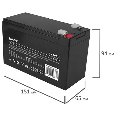 Аккумуляторная батарея для ИБП любых торговых марок, 12 В, 7 Ач, 151х65х100 мм, SVEN, SV-0222007