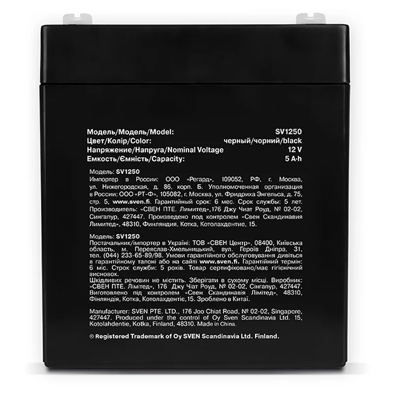 АКБ серии SVEN SV отличаются следующими характеристиками: пониженным током саморазряда, широким рабочим диапазоном температур, высоким КПД и качеством изготовления.