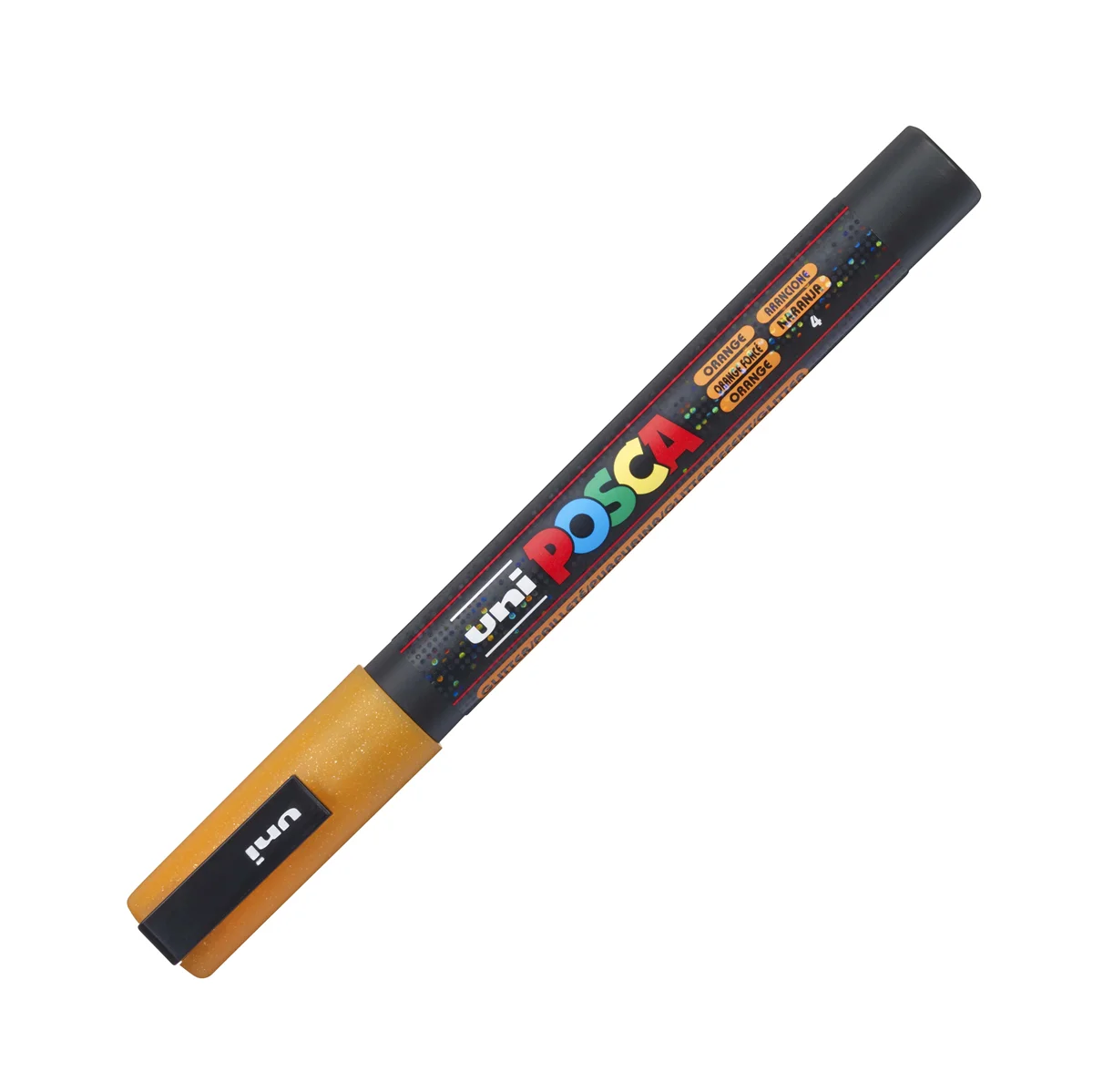 Маркер акриловый Uni Posca PC-3ML оранжевый с блестками, 0.9 - 1.3 мм, круглый