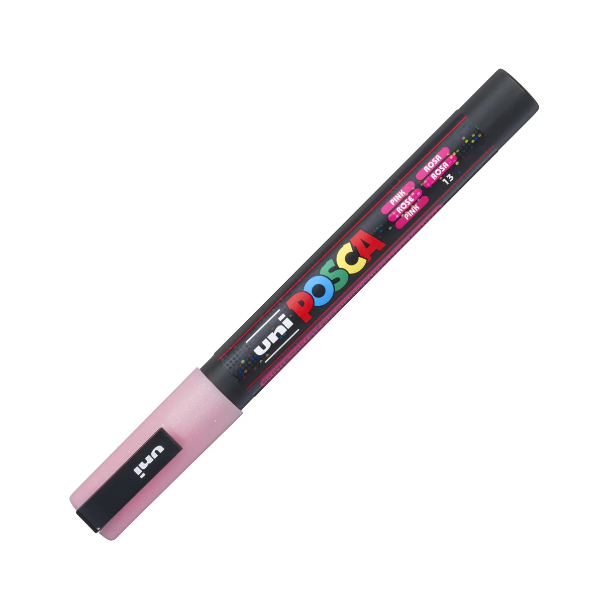 Маркер акриловый Uni Posca PC-3ML розовый с блестками, 0.9 - 1.3 мм, круглый