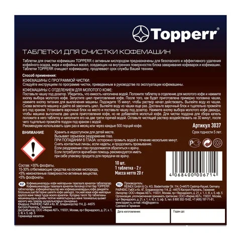 Очищающие таблетки Topperr для чайников и кофеварок, в таблетках