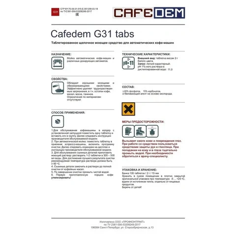 Таблетки для удаления кофейных масел CAFEDEM G31, 10 шт., 30715, CD-G31-KM2-T10