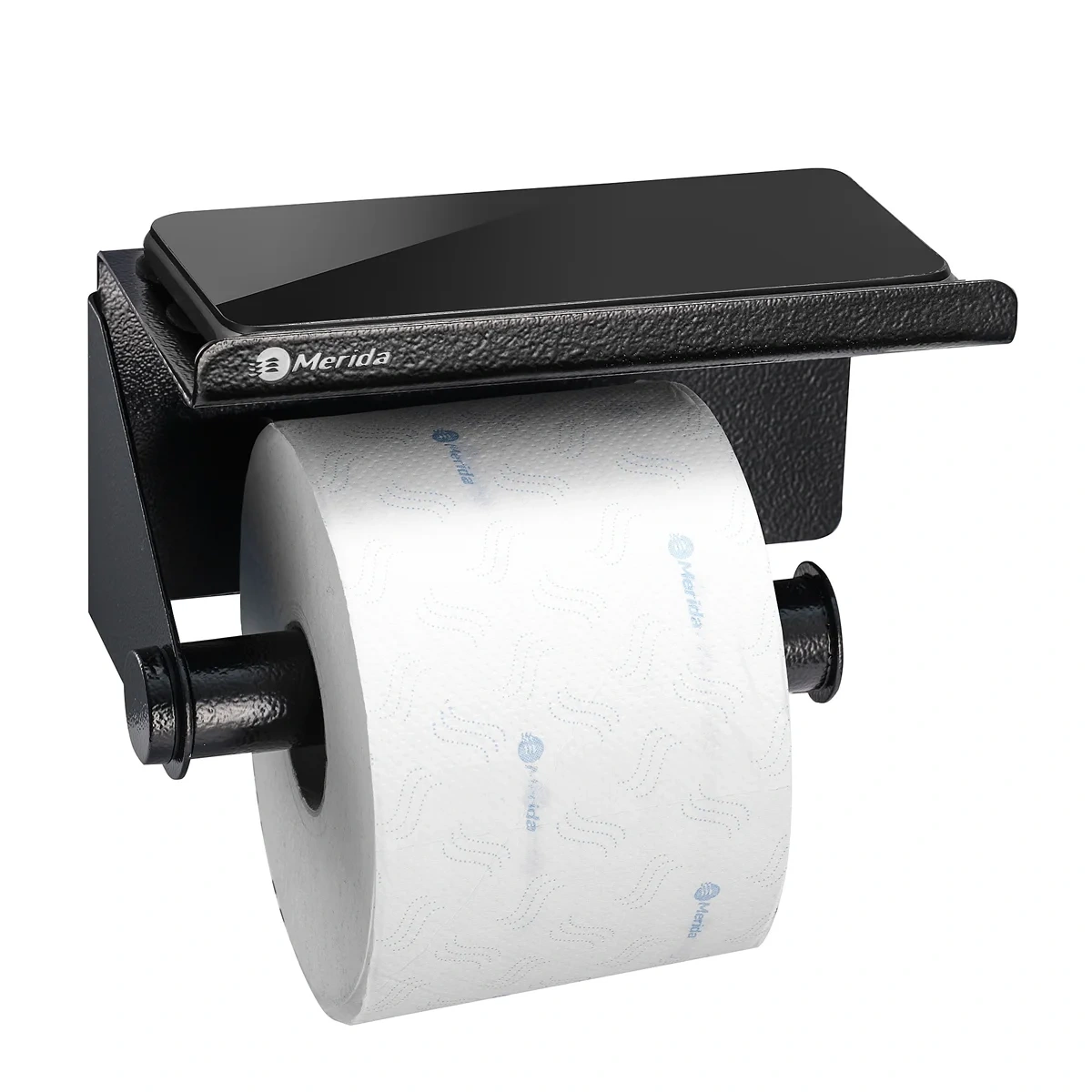 Держатель туалетной бумаги Merida Stella R U3CS.R, черный, с полкой