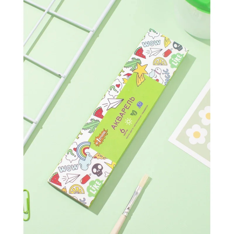 Краски акварельные медовые 1School Отличник 6цветов 40г Акварельные медовые краски 1School 'Отличник' предназначены для детского творчества иучебных занятий. Краски изготовлены сдобавлением пчелиного мёда, который выступает вроли натурального связующего компонента. Акварель легко размывается водой, хорошо наносится набумагу, отличается чистыми ияркими оттенками. Краски безопасны для детей, несодержат токсичных веществ илегко смываются скожи иотстирываются содежды. Краски поставляются вкартонной упаковке. Набор включает 6полусухих красок. Объём одной кюветы- 2,8см. Кисточка вкомплект невходит. Законодательные итехнические документы