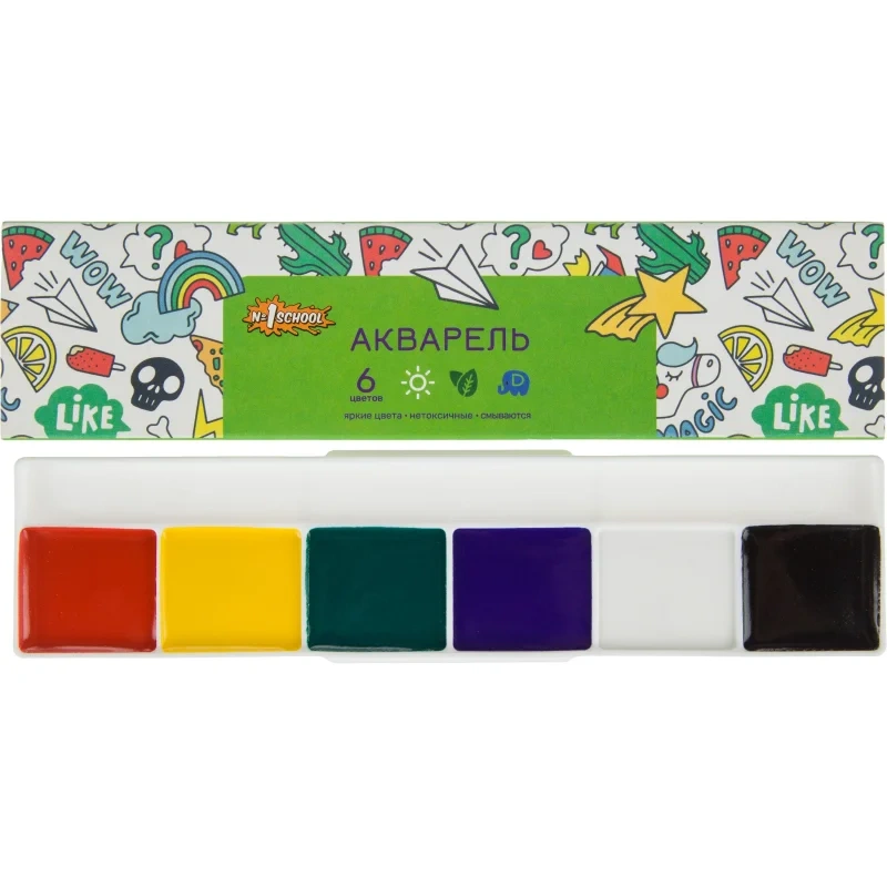 Акварель №1 School Отличник 6 цветов, без кисти