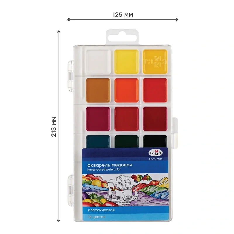 Акварель Гамма 'Классическая', медовая, 18 цветов, без кисти, пластик. упак., европодвес NEW