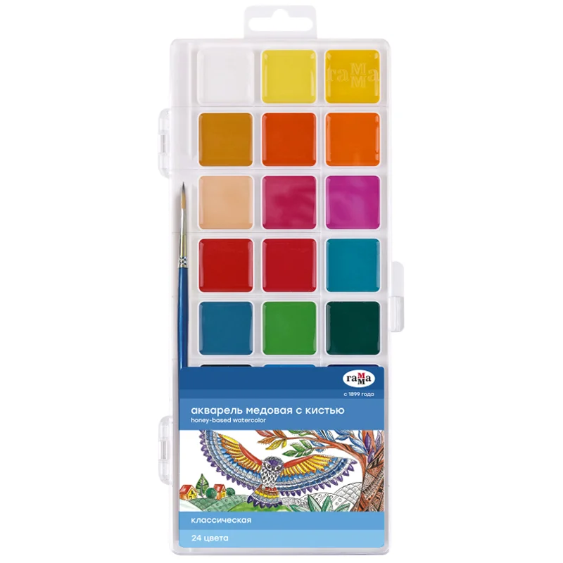 Акварель Гамма 'Классическая', медовая, 24 цвета, с кистью, пластик. упак., европодвес NEW