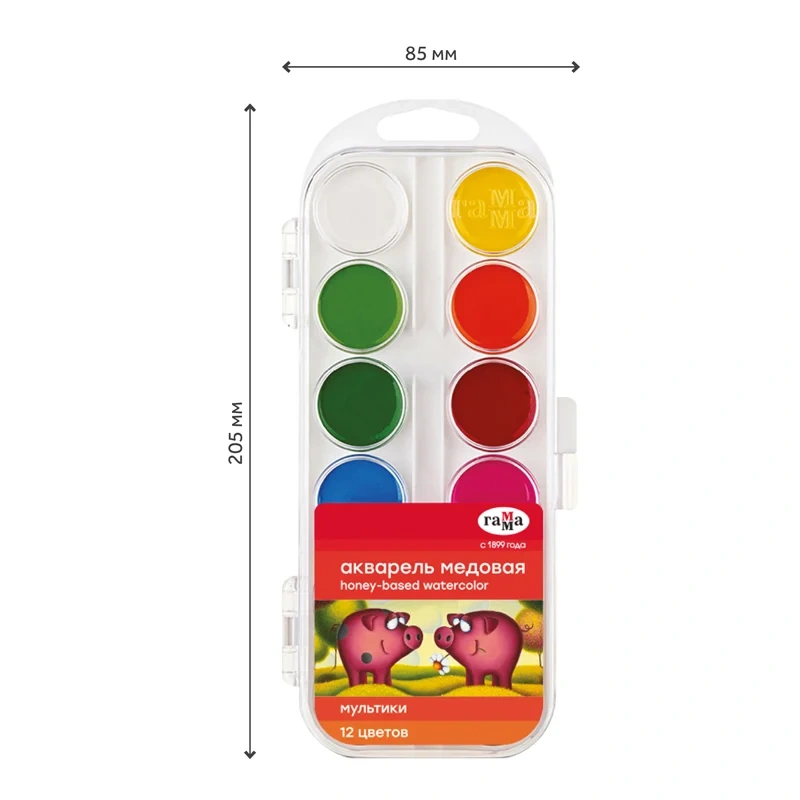 Акварель Гамма 'Мультики' NEW, медовая, 12 цветов, без кисти, пластик. упак., европодвес