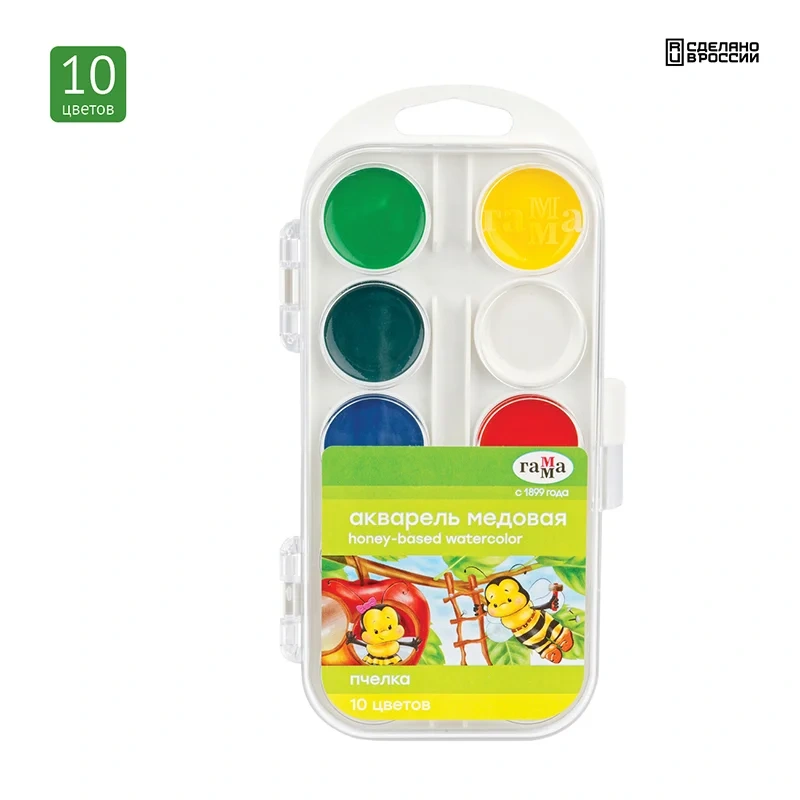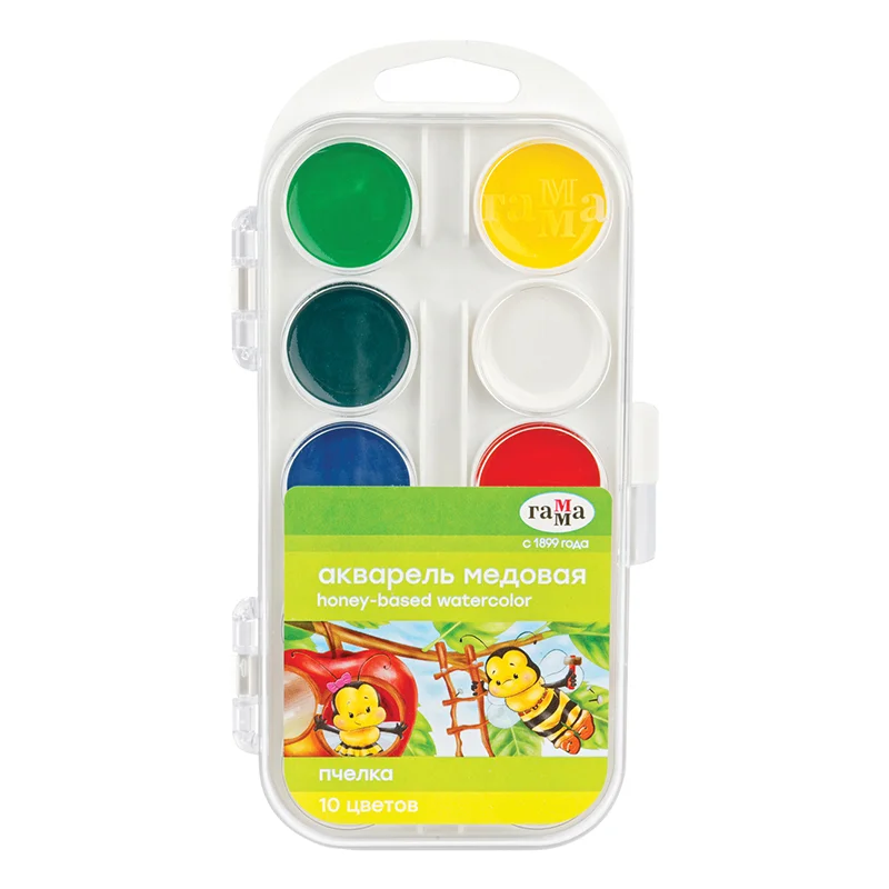 Акварель Гамма 'Пчелка NEW', медовая, 10 цветов, без кисти, пластик. упак., европодвес