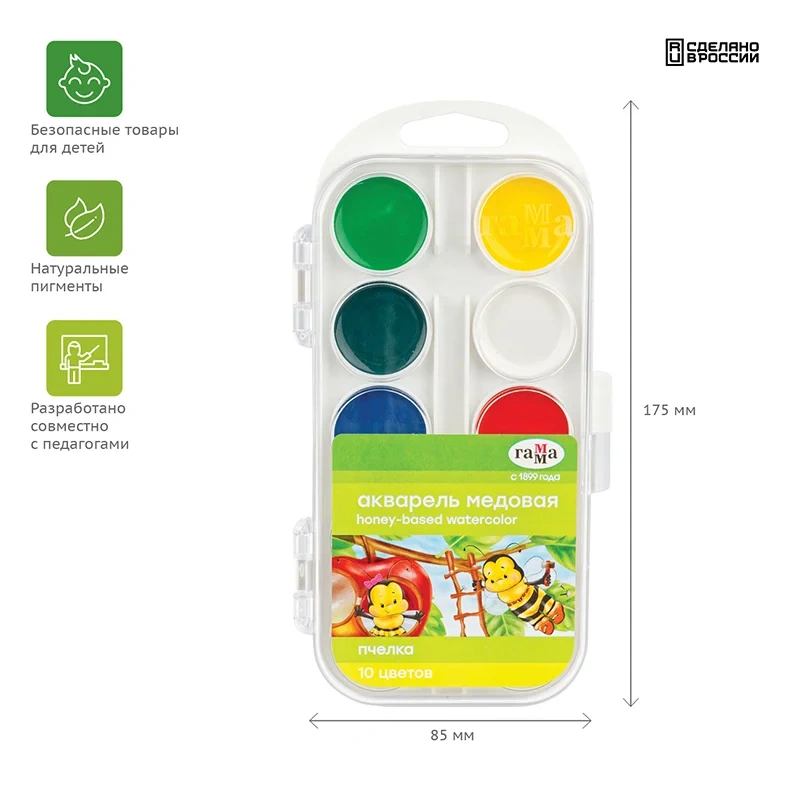 Медовая полусухая акварель серии 'Пчёлка' разработана для детей дошкольного и школьного возрастов.