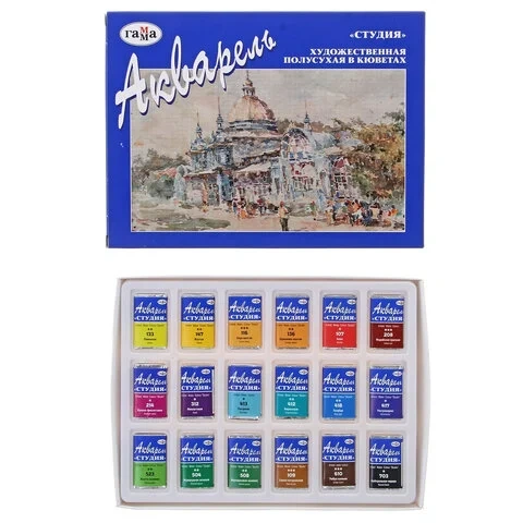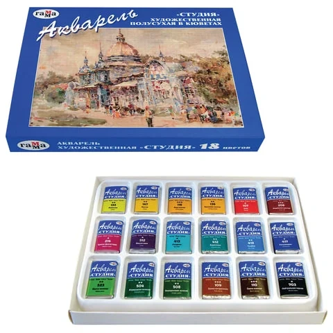 Акварель Гамма Студия 18 цветов, без кисти, 215003
