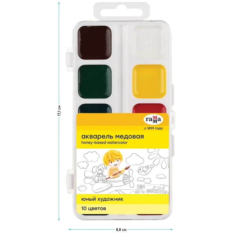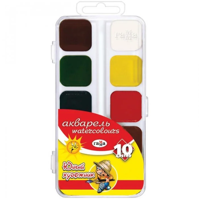 Акварель Гамма Юный художник 10 цветов, без кисти