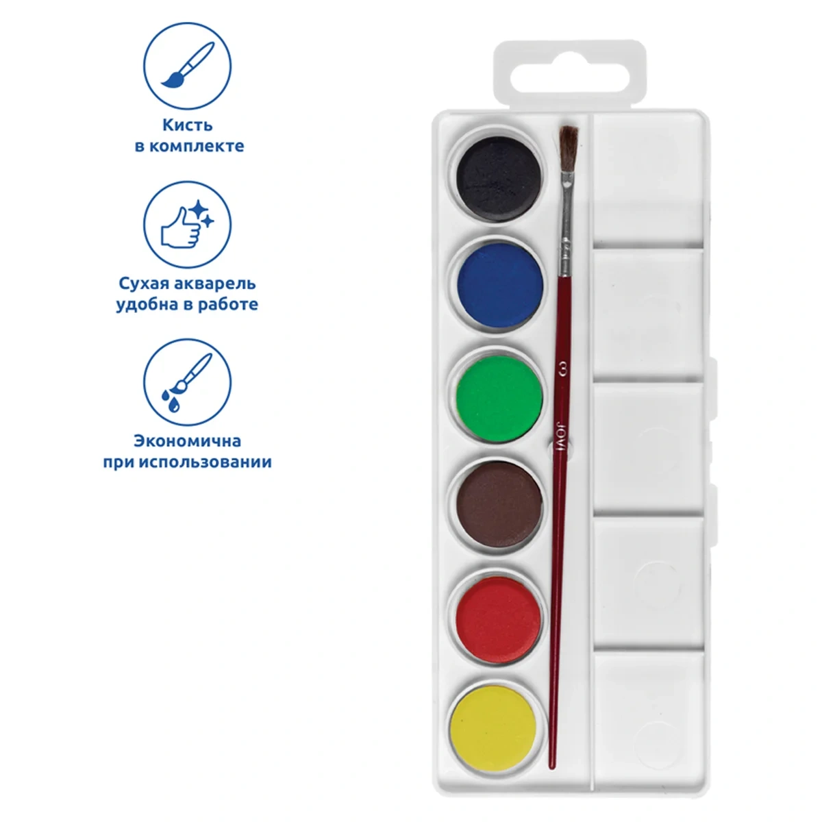 Акварель JOVI, 06 цветов, малые кюветы, с кистью, с палитрой, пластик, европодвес