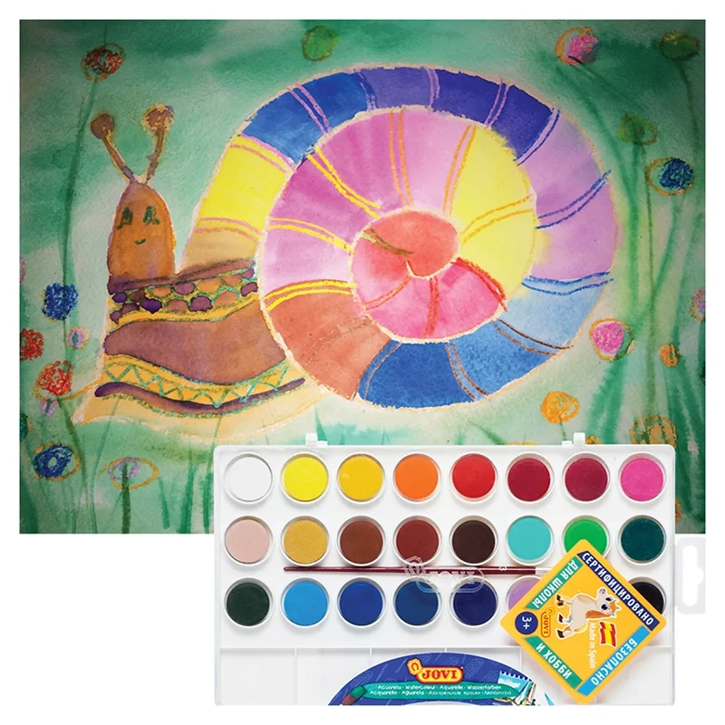 Акварель JOVI, 24 цвета, малые кюветы, с кистью, с палитрой, пластик, европодвес