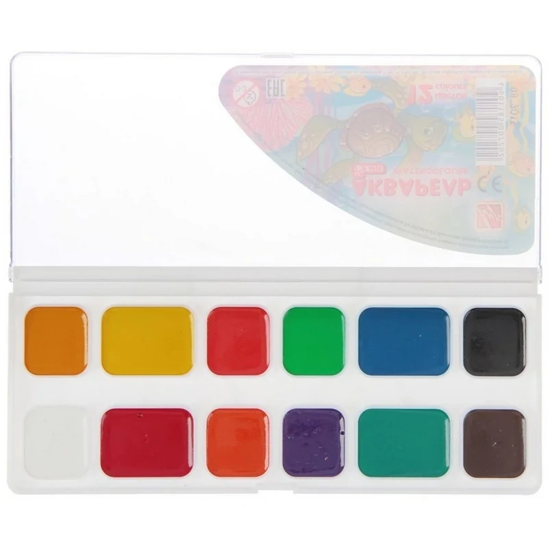 Акварель отличается чистыми и яркими оттенками, хорошо размывается водой, легко наносится и смешивается, сохраняя насыщенность цвета. Краски безопасны для детей, легко смываются с кожи и отстирываются с одежды.