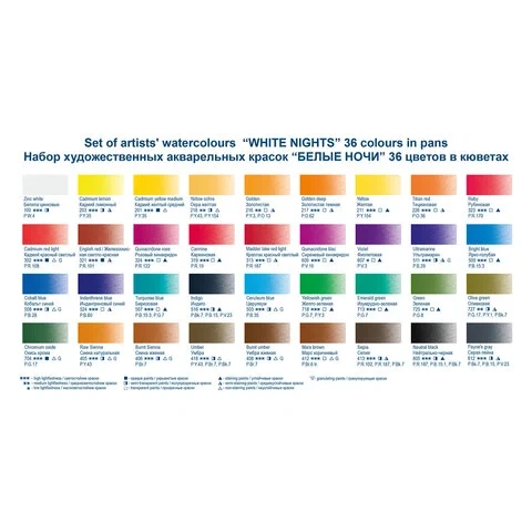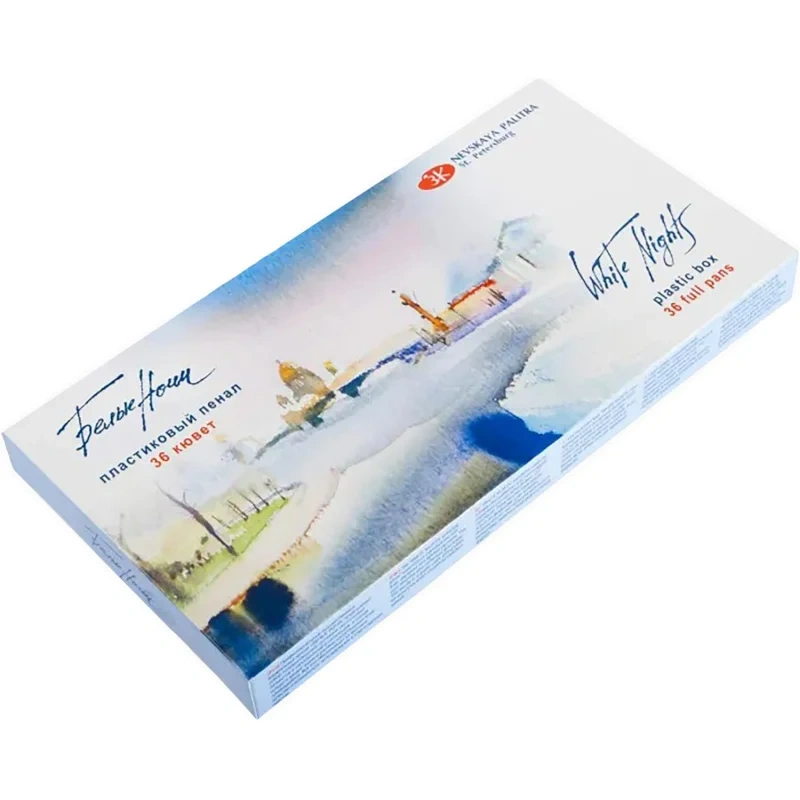 Краски акварельные Белые ночи набор 36 цветов по 2.5 мл в кюветах с палитрой