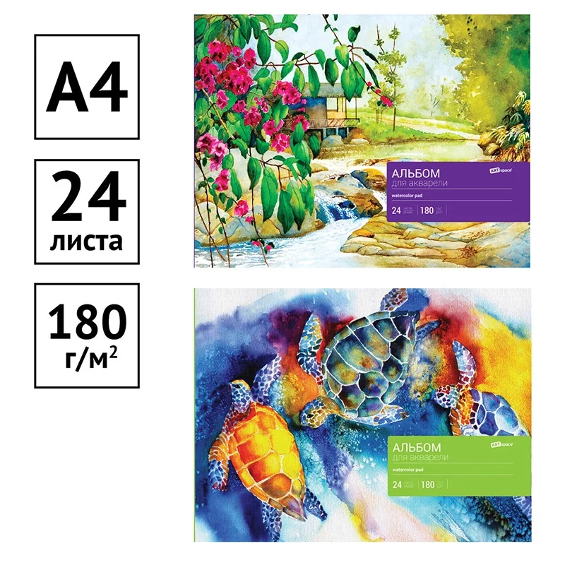 Альбом для акварели Artspace Природа, А4, 180 г/м2, 24 листа, на склейке