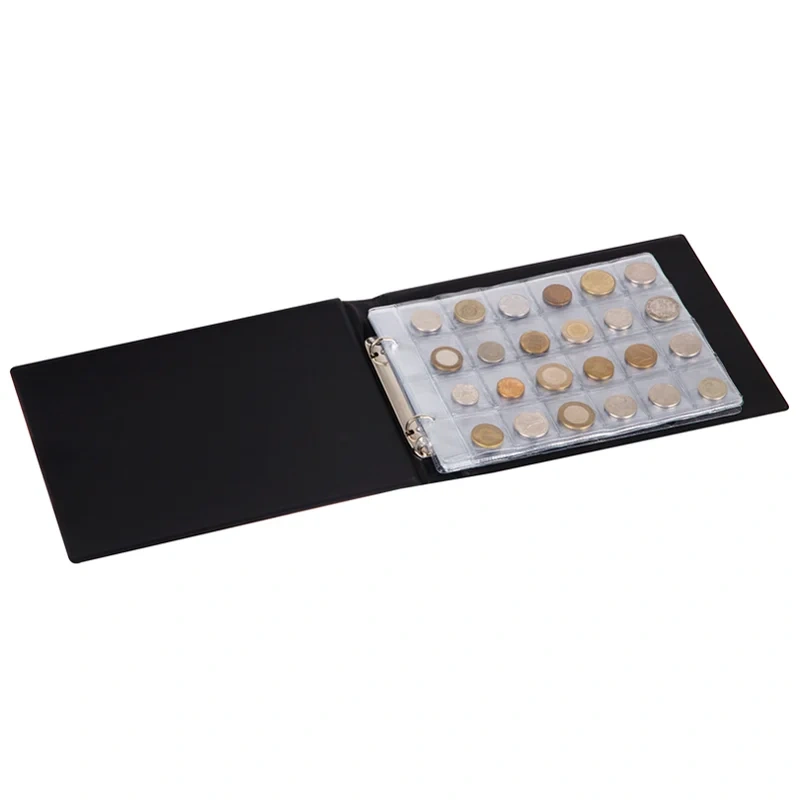 Альбом для монет на кольцах, 10 листов, 245*190, ПВХ. Ориентация альбома: горизонтальный. Наполнение: 3 листа по 12 ячеек + 5 листов по 24 ячейки + 2 листа по 63 ячейки. Описание крышки: ПВХ+Картон+ПВХ, листы 245*190, разделители 245*190. Клише Collectoin на лицевой стороне изделия, шелкотрафарет.