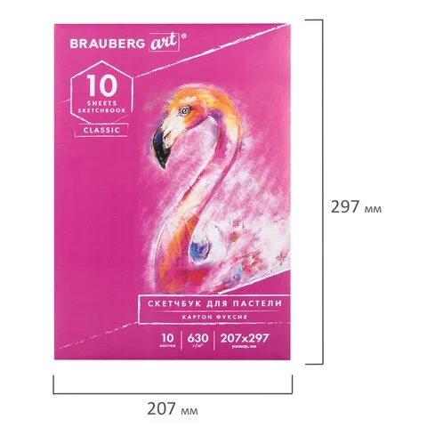 Альбом для пастели, картон ФУКСИЯ тонированный 630 г/м2, 207x297 мм, 10 л., BRAUBERG ART CLASSIC, 10