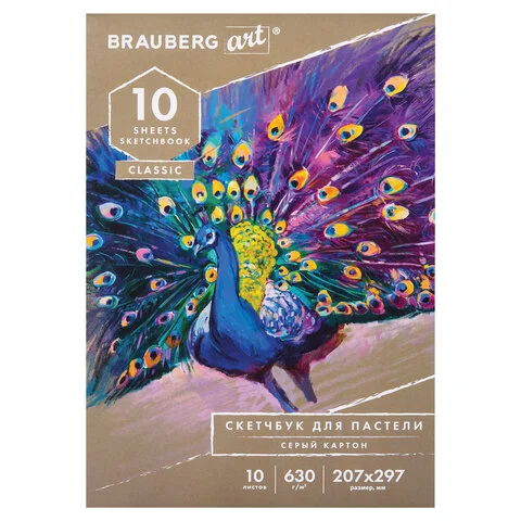 Альбом для пастели, картон СЕРЫЙ некрашенный 630 г/м2, 207х297 мм, 10 л., BRAUBERG ART CLASSIC, 1059