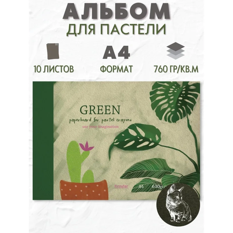 Альбом для рис.пастелью Kroyter А4 10л,блок зел.тонир.760гр,мелов.карт.7538
