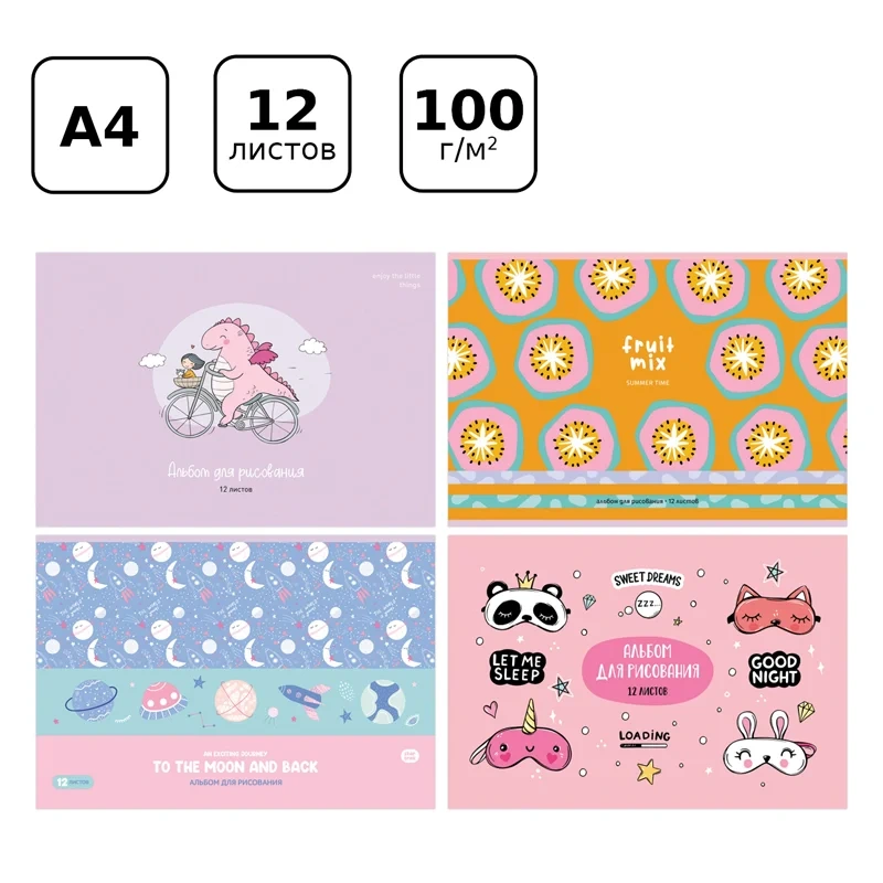 Альбом для рисования BG «Акварельные сказки» поставляется с ассорти дизайнов формата А4 и размера 205*295 мм. Товар с обложкой из плотной мелованной бумаги плотностью 170 гр/м2 из 8 листов офсетной бумаги 90% белизны. Тип скрепления изделия – скрепка. Плотность бумаги альбома составляет 100 г/кв.м, что соответствует техническому регламенту «О безопасности продукции, предназначенной для детей и подростков». В данную серию входят дизайны как для мальчиков, так и для девочек. Альбом отлично подходит для рисования различными типами красок, фломастерами, цветными и чернографитными карандашами, гелевыми ручками. Без возрастных ограничений.