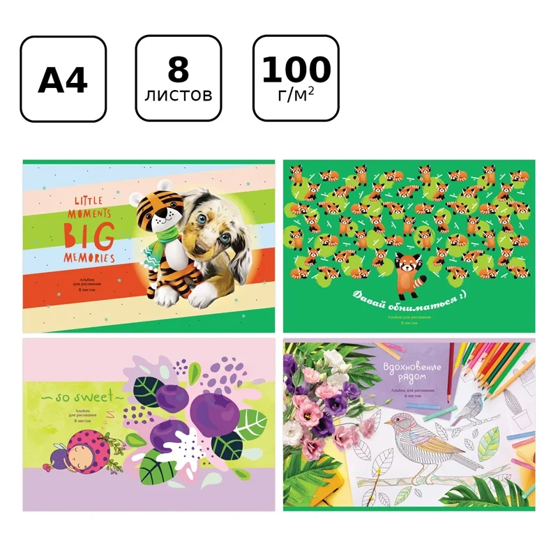 Альбом для рисования 08л., А4, на скрепке BG 'Лови моменты'
