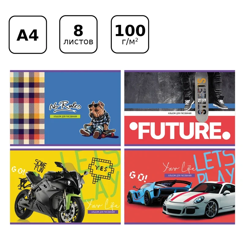 Альбом для рисования BG «Люблю спорт» поставляется с ассорти дизайнов формата А4 и размера 205*295 мм. Товар с обложкой из мелованного картона из 8 листов офсетной бумаги 100% белизны. Тип скрепления изделия – скрепка. Плотность бумаги альбома составляет 100 г/кв.м, что соответствует техническому регламенту «О безопасности продукции, предназначенной для детей и подростков». В данную серию входят дизайны для мальчиков. Альбом отлично подходит для рисования различными типами красок, фломастерами, цветными и чернографитными карандашами, гелевыми ручками. Без возрастных ограничений.