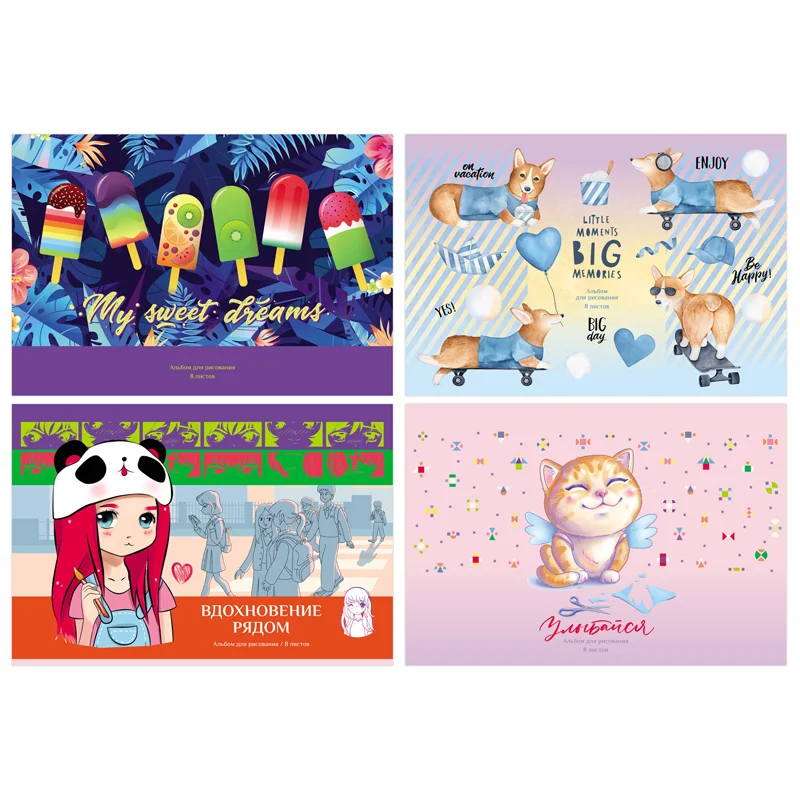 Альбом для рисования 08л., А4, на скрепке BG 'Mix. Девочки', эконом