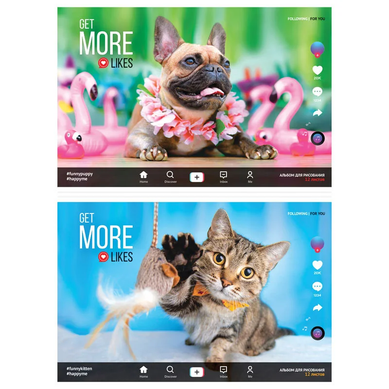Альбом для рисования 12л., А4, на скрепке ArtSpace 'Питомцы. More likes', эконом