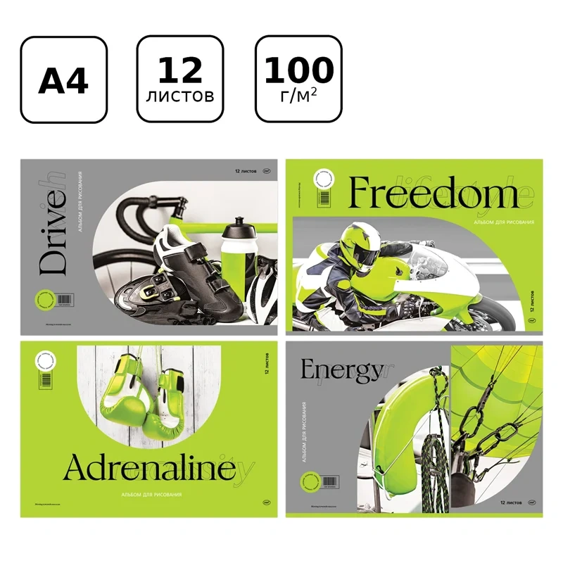 Альбом для рисования 12л., А4, на скрепке BG 'Моя энергия'