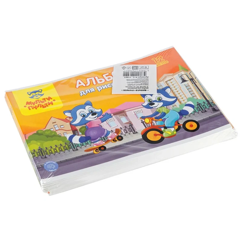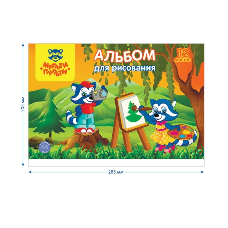 Альбом для рисования «Мульти-Пульти» «Приключения Енота» на скрепке, с раскраской. Плотность бумаги: 100 г/кв.м. Размер: 205*285 мм. Внутренний блок: офсетная бумага. Материал обложки: мелованный картон. На обороте обложки напечатаны картинки для раскрашивания. Альбом отлично подходит для рисования различными типами красок, фломастерами, цветными и чернографитными карандашами, гелевыми ручками.