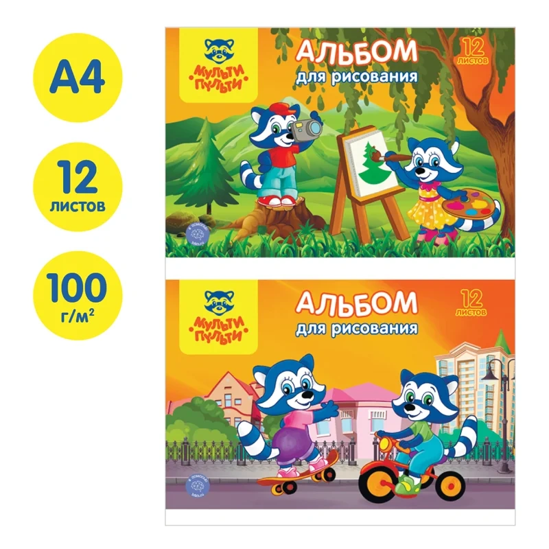 Альбом для рисования 12л., А4, на скрепке Мульти-Пульти 'Приключения Енота', с раскраской