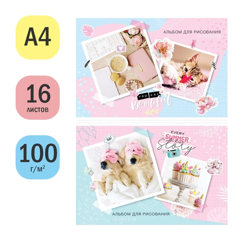 Альбом для рисования 16л., А4, на скрепке ArtSpace 'Стиль. Summer story', эконом